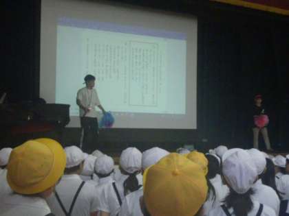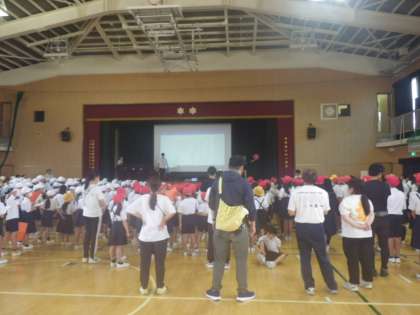 運動会までおおよそ一カ月。徐々に学年の練習が始まりだしました。今日は児童集会で応援合戦の歌の練習です。