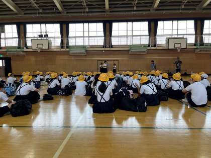 出発式では、代表児童が元気よくあいさつをし、「楽しく安全に行ってきます。」と抱負を述べました。