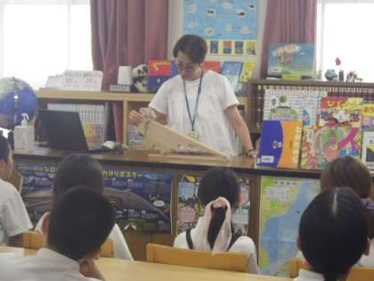 図書館のスペシャルプレゼント【9月26日(金):おはなし組み木「大きなかぶ」と優しい絵本】5年1組