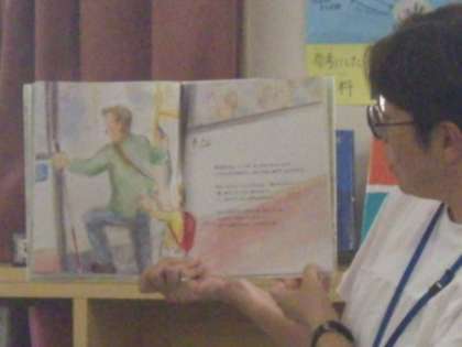 その後、実話をもとにした絵本「バスが来ましたよ」も読み聞かせをしていただきました。一人の何気ない優しさが徐々に広がって、何年もつながっていく心温まるお話です。