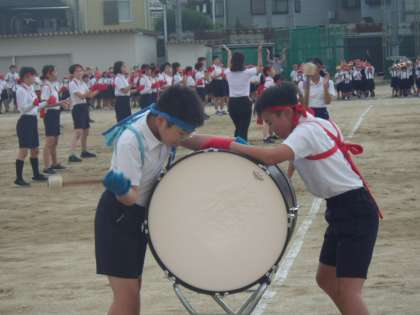 迫力のある太鼓の連打で三・三・七拍子の練習です。