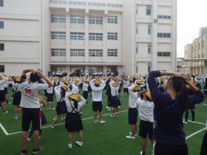 最後に姿勢体操をして朝会を終えました。