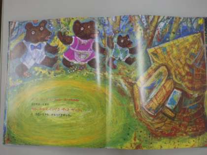 森の中に3匹のクマが住んでいました。1匹は小さく、もう1匹は中くらい、あとの1匹は大きなクマでした。3匹はそれぞれ、自分のと同じ大きさのお椀と椅子、ベッドを持っていました。