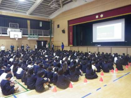 元気よく手を挙げ、回答に一喜一憂する小学生の様子に、中学生もクイズに楽しく取り組むことができたようです。