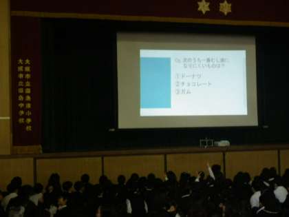 子どもと大人の歯の本数についてや、時事ネタを盛り込んだ楽しい問題など、みんなに楽しんでもらえるような工夫がたくさんありました。