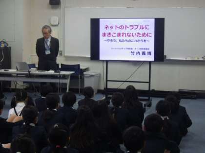今日は区役所の生きるチカラ学びサポート事業で「ネットのトラブルにまきこまれないために」としてソーシャルメディア研究会の竹内先生をお招きして教えていただきました。