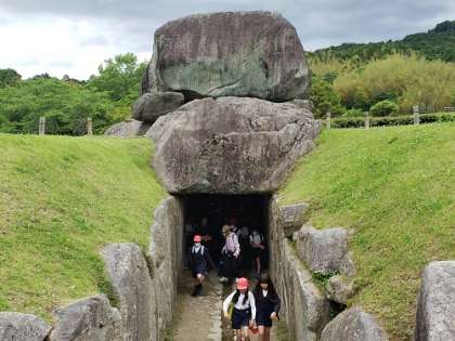 お天気は曇り空でしたが、長く歩くにはちょうどいい気温でした。飛鳥駅に到着してからは、班で亀石や鬼の俎・雪隠などをまわって活動をしました。地図を頼りにみんなで協力してクイズを解いていました。
