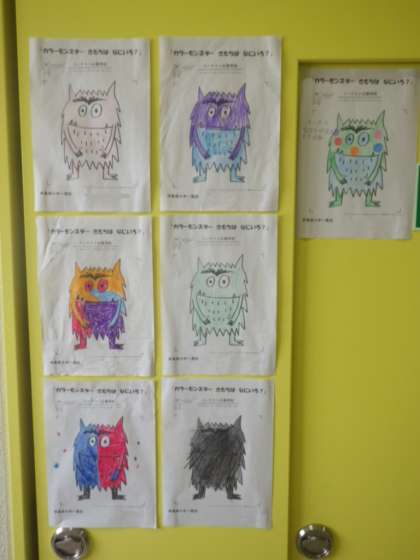 今週もカラーモンスターの友だちが増えています。いろいろな気持ちが表れてきているので、みんなも学校図書館に行きがてら、見てあげてほしいと思います。