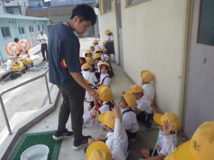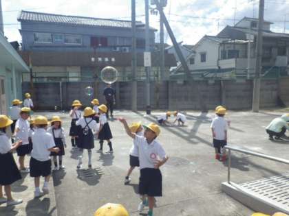 今日は風があって自然としゃぼん玉が出来上がっていく様子も見れました。「きれいやねぇ!」「大きいのができた!」「枠で捕まえることができた!」とそれぞれしゃぼん玉を楽しむ様子が見られました。