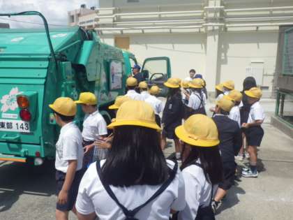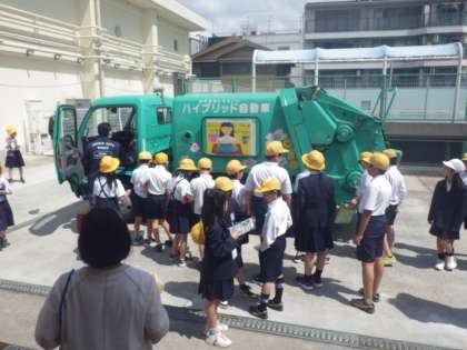 パッカー車のひみつを探すミッションに挑戦しています。ハイブリットの電池はどこかな?。