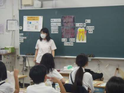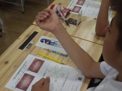 今日は6年生で「歯と口の健康教室」がありました。始めは50年くらい前のサルの歯と歯茎の様子から、どのような食べ物を食べていたか確かめながら、その生活環境を考えるクイズでした。歯と歯茎が健康に見える方が「野生」で、不健康に見える方が「動物園」という答えに食べているものの関係に納得の声が上がりました。