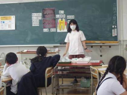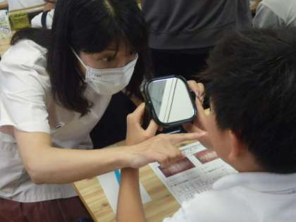 歯ぐきの健康具合を自分の目で確認するために鑑も用意しました。きちんと確かめようと歯科衛生士の先生に診てもらう子もいました。