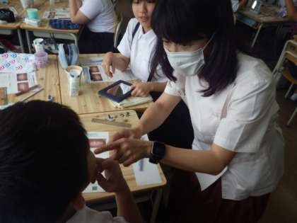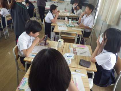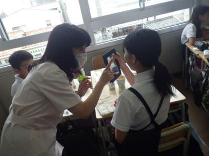 赤色の染料で歯垢の染め出しもしました。赤くなったところと歯茎の張れているところがほぼ一致していることに驚きの声が上がりました。