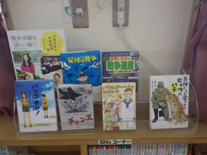 特別に飾っている本は図書館の中にほかにもたくさんあります。どんな本かな?と興味を持ってくれると嬉しいです。