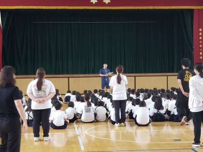 校長先生から、身の回りの安全・安心についてのお話から、今日は能登半島地震の発生から半年がたち、いまだにその被害の影響が大きく残っていることをお話しいただきました。そして今日が「国民安全の日」に制定されていて、産業安全、交通安全、火災予防、学校安全、海難防止等を一丸とした安全運動の連携と、これら安全運動の共通の基盤となる安全意識の高揚、安全水準向上のための国民運動展開のため創設されたものです。