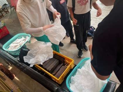 宿での避難経路を確認し、焼いた杉板を受け取りました。