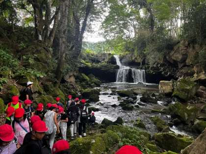 溶岩瘤を乗り越えて二段滝にやってきました。すごく荘厳なようすです。