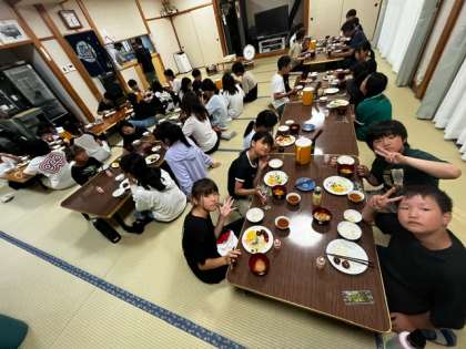 今日は登山やキャンプファイヤーもあるので、なるべくしっかり食べてくださいね!