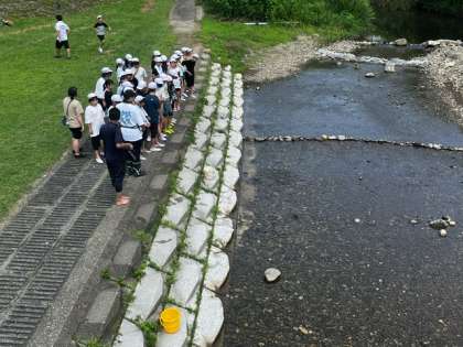 マスつかみ体験の川までやってきました!群れをなして泳ぐ魚がとても綺麗です。