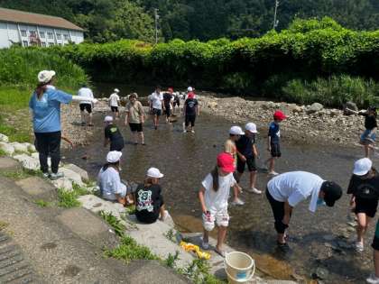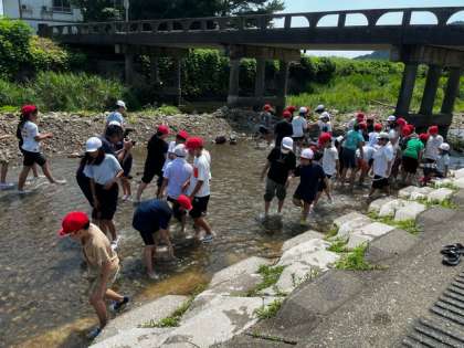 登山の疲れや暑さもなんのその、みんな元気いっぱいに魚を追いかけています!