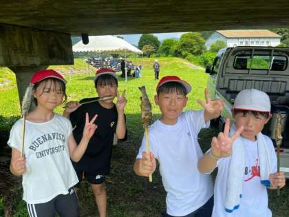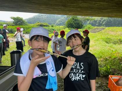 捕まえたお魚を塩焼きにしていただきました!美味しい!