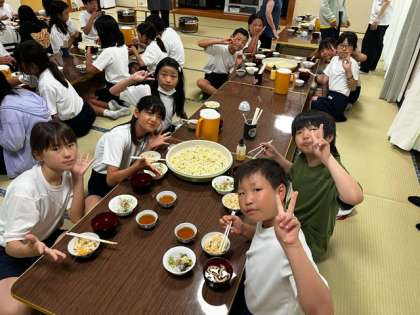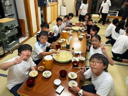 昼食にはみんなで作ったうどんが出てきました!太くてちょっとかたいところもありますが、とても美味しいです!