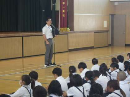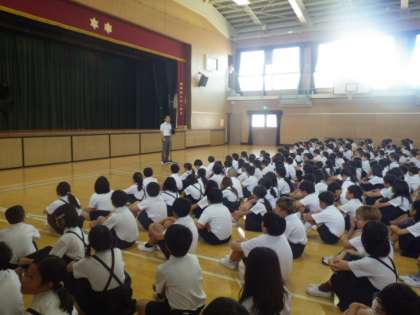 グッドマン医師の言葉に「失われたものをかぞえるな,残っているものを最大限に生かせ」というものがあります。これは、すべての人に当てはまることでもあり、できないことがあるのはみんな同じでそのことばかりにとらわれることはなく、人それぞれに輝く素晴らしい力を持っているので、学んだり、遊んだりしている中で自分の輝く力を見つけてほしい、2学期も、自分の力を見つけるためにしっかりと学び、遊んでほしいことをお話されました。
