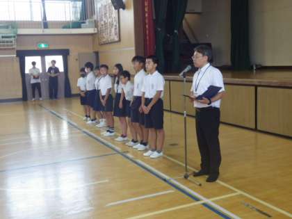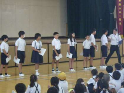 次に大阪市の水泳記録会に参加した皆さんに記録証の伝達がありました。50m自由形の記録の発表があると、その速さに感嘆の声があがっていました。