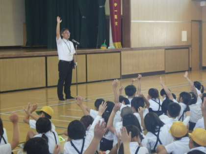 副校長先生から、夏休み明けの皆さんの元気な姿を見てうれしく思ったこと、有意義な夏休みだったことが思われて良かったことのお話がありました。