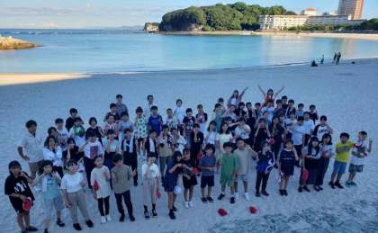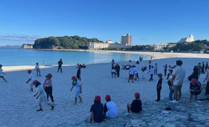 白良浜まで行き、学級と学年の集合写真を撮ってから軽く体を動かしました。
