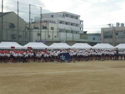 入場の時にはプラカードの係の人や、校旗の係の人、応援団の団長の人が始めに入場し、全員が続いて入場します。