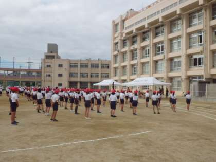 今週19日(土)には運動会があります。今日は運動会本番に向けて、全校で開会式や閉会式の入退場等全体の動きについて練習をします。