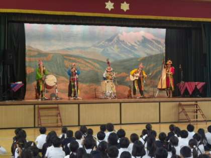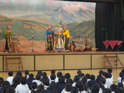 今日は芸術鑑賞会がありました。1年生から4年生の部と5年生から9年生の部で2回に分けて実施しました。