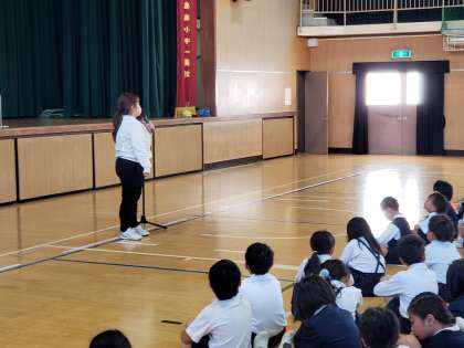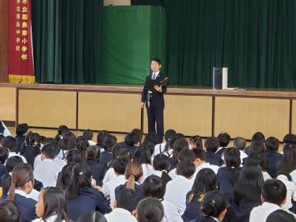 今日の児童朝会は校長先生から、学校での過ごし方で気を付けてほしいことや、一生懸命に取り組むことの良さについて、6年生の運動会での団体演技のすばらしさや頑張りを例に挙げてお話しいただきました。