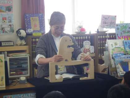図書の時間の読み聞かせに「おはなし組木」が登場しました。今日のお話は「三匹のヤギのがらがらどん」です。