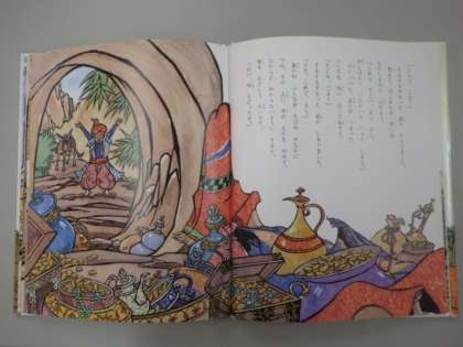 今日の「お話で世界旅行」は、「アリババと40人のとうぞく」でした。このお話は昔のペルシャの「アラビアン・ナイト(千夜一夜物語)」というたくさんのお話の集まりの中の一つです。「シンドバッドの冒険」「アラジンと魔法のランプ」と並んで、有名なお話の一つでもあります。