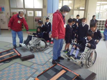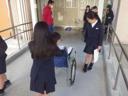 普段歩きなれた校舎も、車いすを押したり、乗って移動すると全く違った印象になったようでした。