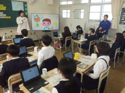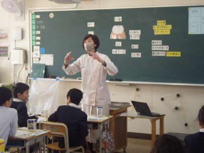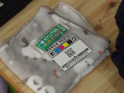 咀嚼力チェックは、噛む力によって色の変わるガムで、ICTを使ってチェックするものです。噛んだガムの写真を撮って、専用のサイトでどのくらいの咀嚼力かを数値で表してくれます。自分の数値を見て、これから食事の時にはしっかりと噛んで食べようという意識を持ちやすくなりますね。