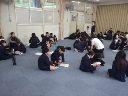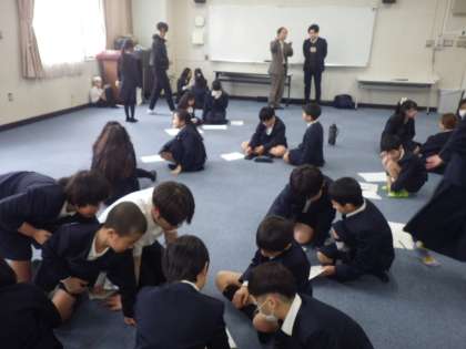 同じ日に、4年生の漫才ワークショップもありました。「ムジンゾウ」のお二人は3年生・4年生の両方をアシストしていただきました。