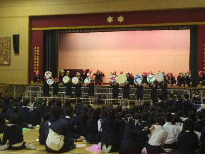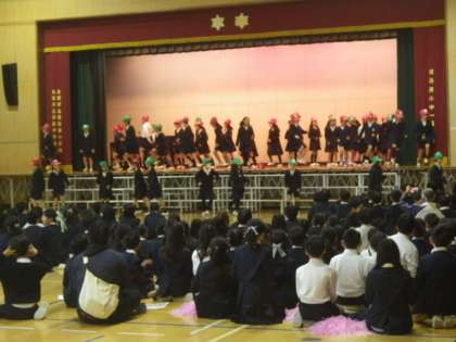 4年生は、ゲームをモチーフにダンスと呼びかけです。