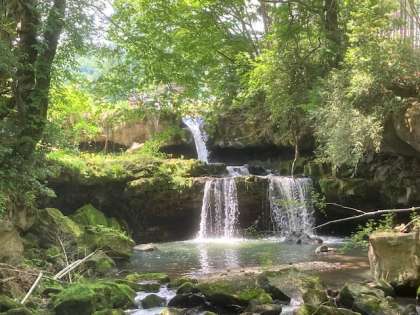 日差しがきついのですが、滝がある林の中は、ひんやりとして涼しかったです。