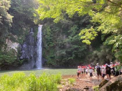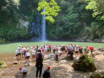 5年生 林間学習 公開日 2025/05/28 更新日 2025/05/28 お知らせ 八反の滝を見学しました。 この辺りでは一番大きな滝で、落差は24mあるそうです。とても空気がよく、マイナスイオンを感じました。 靴をぬいで、少し水遊びをしました。トンボやカエルなどの生き物を観察することもできました。 いいね(0)