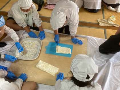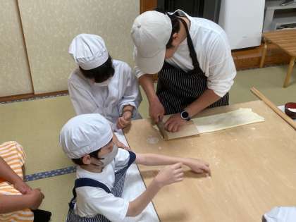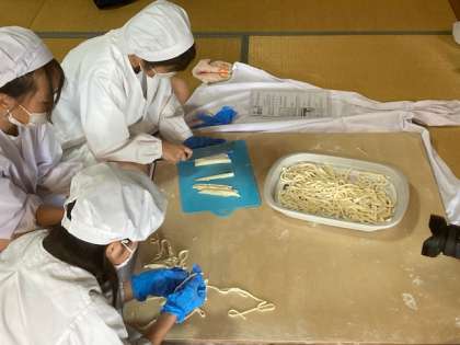 みんなが作ったうどんは、宿の方に茹でていただき、昼ご飯でいただきます。