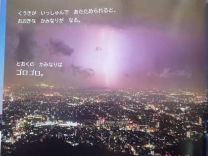 今日の読み聞かせは、いつもとは少し趣を変えて、ふしぎいっぱい写真絵本のシリーズから「かみなり」を読んでいただきました。