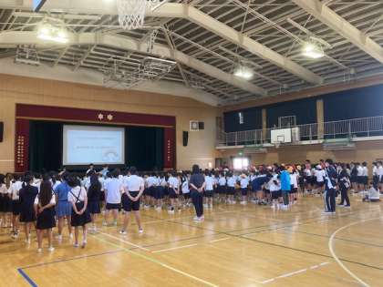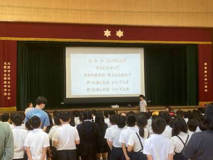 朝一番にもかかわらず、みんな一生懸命に歌っていました。体育館は元気な歌声でいっぱいになりました。