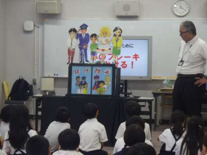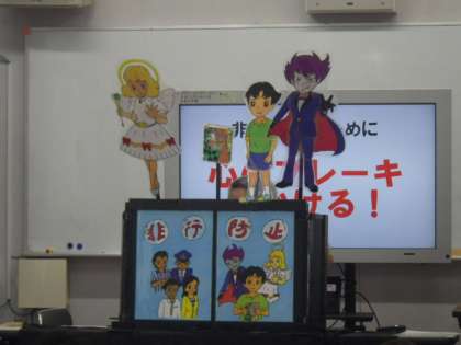 次に、ペープサートを使って実際に子ども達が直面するような場面を再現したお話をしていただきました。