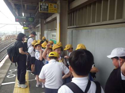 今日は3年生の社会見学で環状線一周とあべのハルカス展望台の見学に行きました。まず東部市場前駅から天王寺駅に行き、環状線内回りに乗り換えます。まずは大阪駅に向かって途中の駅の様子や街の様子を観察しながらワークシートにメモを取っていきます。