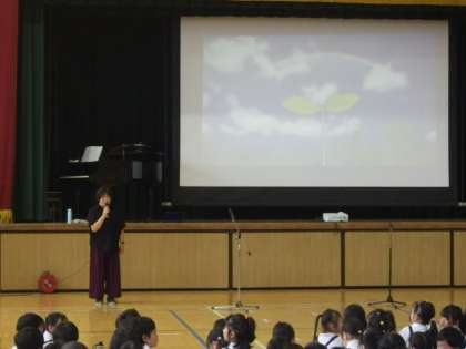 最後に校長先生から「平和は自分から積極的に動いて作り上げていくことが大事なのです」と自分たちが作り上げていくものだという意識を持ってほしいことをお話しいただきました。