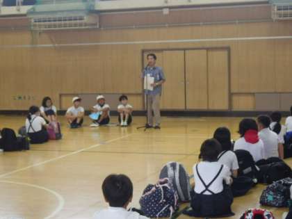 朝の早い時間ですが、みんな集合して、出発式を行います。