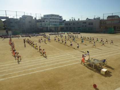 今日は先週体育館で練習した応援合戦を運動場に出て練習しました。
